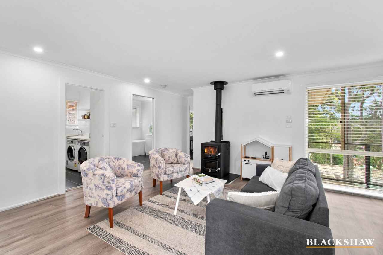 The light‑filled kitchen flows effortlessly into the open living and dining areas, creating a welcoming hub for everyday living. A cosy fireplace and air conditioning keep the home comfortable year‑round, while large windows capture natural warmth and brightness. Upstairs you'll find three generous bedrooms, a fresh main bathroom with bathtub, and a handy study nook ideal for homework or working from home.