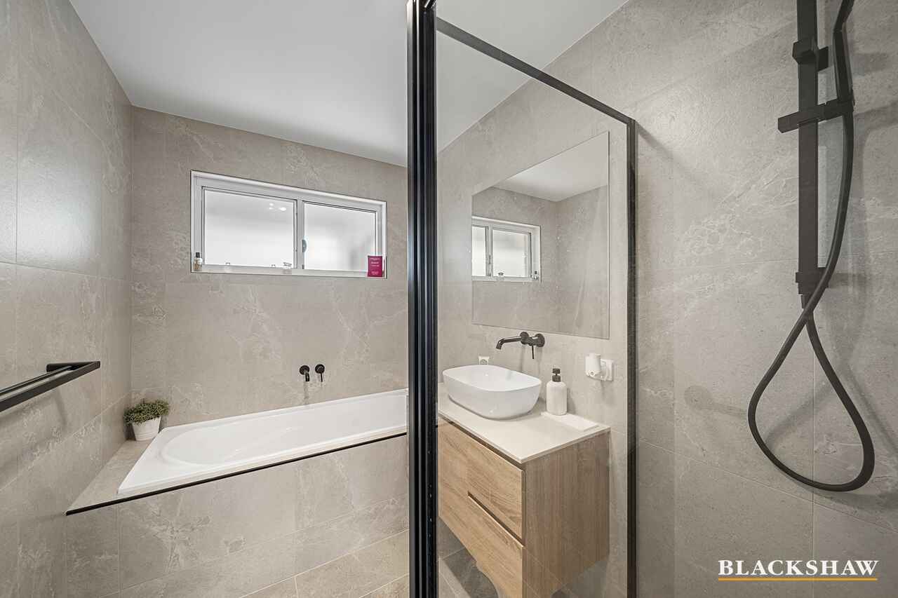 The master bedroom includes its own ensuite, offering privacy and convenience, while the additional bedrooms are serviced by a modern bathroom tiled from floor to ceiling.
