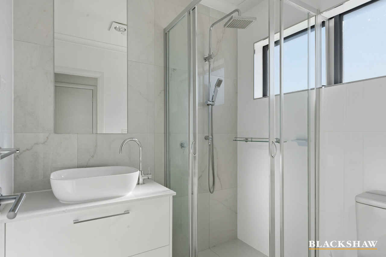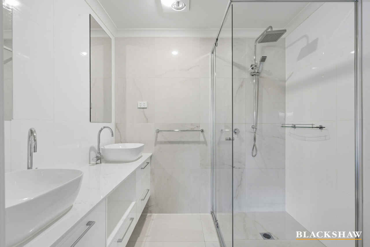 Upstairs the spacious main bedroom is well equipped with an ensuite including dual sink vanity, rain head shower hardware and floor to ceiling tiles for easy cleaning. The walk-in wardrobe provides plenty of space for clothes.