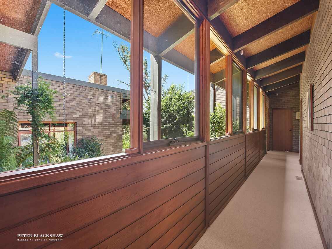 Behind the secluded façade sits this character filled family home offering magnificent views from its vantage point on Mount Rogers at the top of Fraser. This solar passive, architecturally designed home is truly one of a kind captivating the imagination from the moment you enter the front door. Positioned on an impressive 1426m2 corner block, the family will thrive in this functional floor plan with a multitude of living options including a sunken lounge room with a cosy fireplace, dining room and large separate rumpus room or 5th bedroom. What truly sets this home apart is the extra height raked ceilings with exposed beams providing wonderful amount of light and a sense of space as the floor plan effortlessly wraps around a lush and private courtyard with established garden, creating a leafy outlook to and from all living areas.