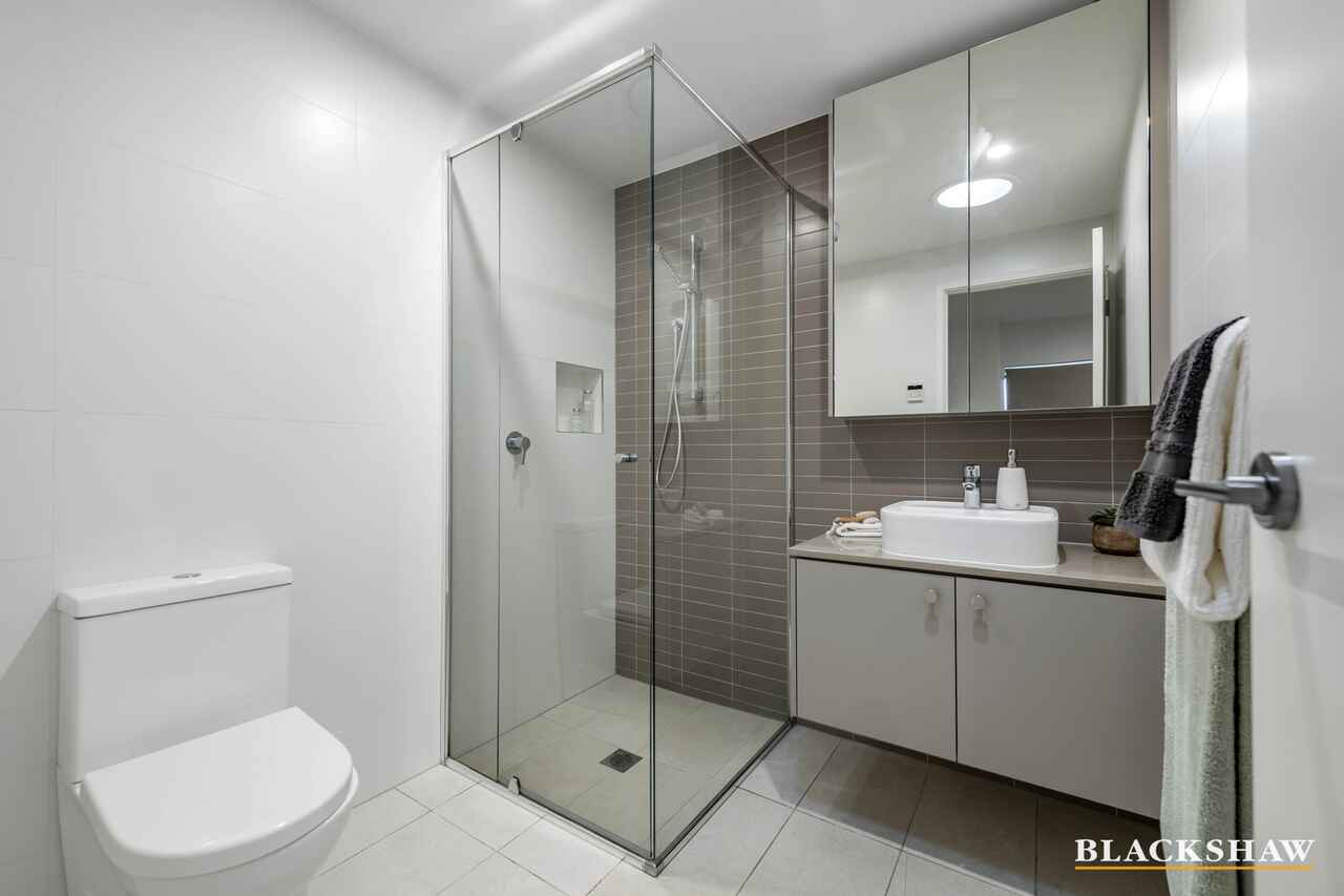 The remaining two bedrooms feature mirrored built-in robes, serviced by a spacious main bathroom with floor-to-ceiling tiles and custom joinery.