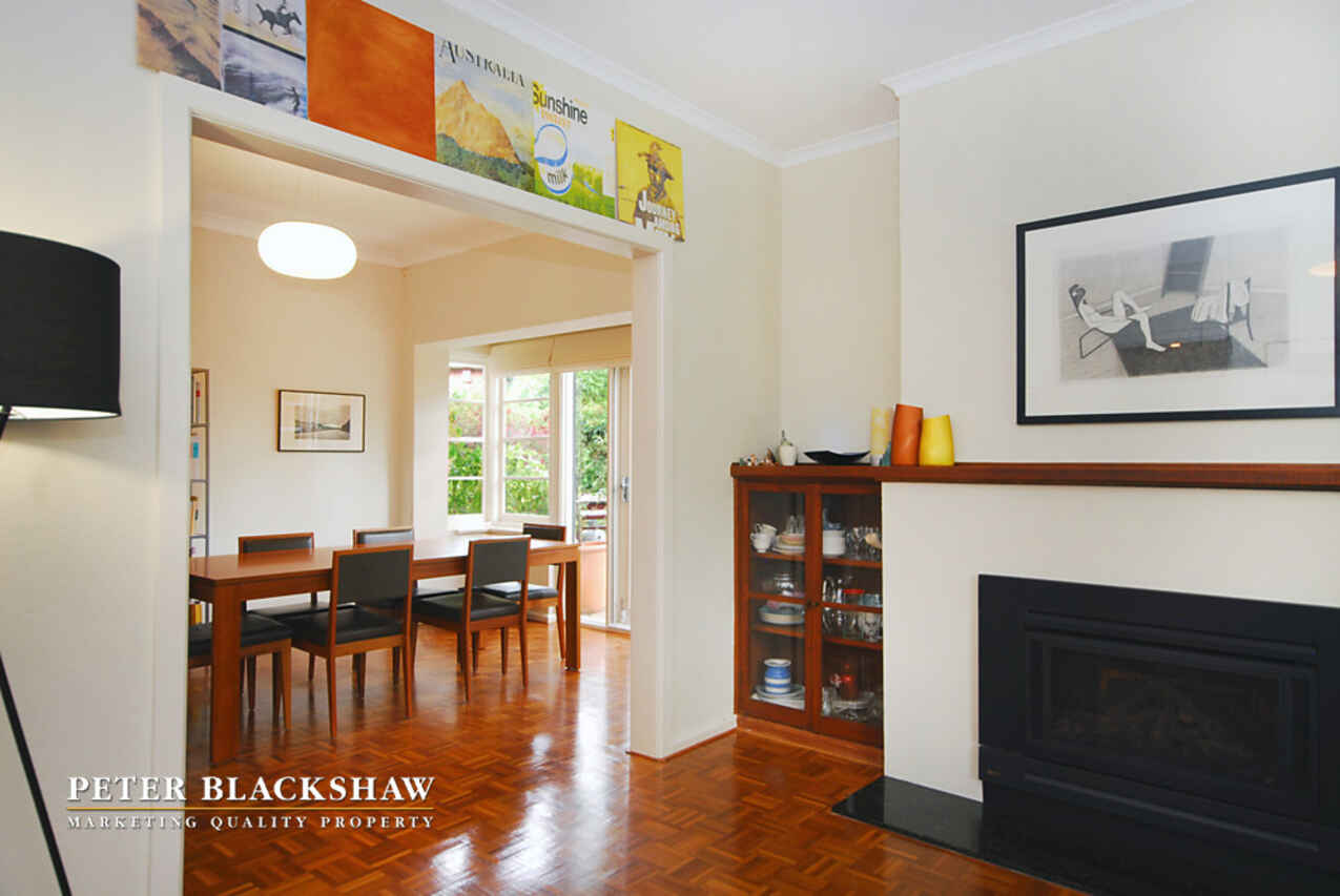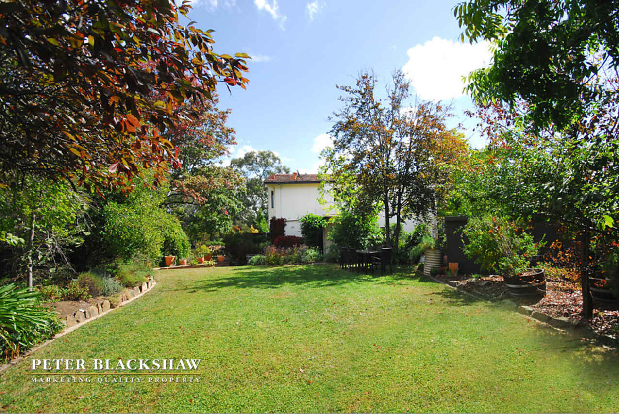 Enjoy a fabulous blend of simple, classic Canberra architecture and chic minimalist renovations and colour choices in this outstanding 5 bedroom, 2 bathroom home. Situated on a tree-studded 1243m2 block, it's set amidst magic, private gardens created by Harris Hobbs Landscapes. It offers a number of private, shady outdoor areas accessed from the living areas and a number of secure street entrances. With around 240m2 of living area, the flexible design is perfect for the larger family with 2 bedrooms, a main bathroom and cosy living areas downstairs along with a beautifully renovated kitchen and bathroom. Upstairs there's a large, open living space, 3 huge bedrooms and another chic bathroom. The generous use of large picture windows enables stunning garden vistas to be enjoyed from almost every room, whilst gleaming parquetry flooring creates warmth and character throughout the home. In addition to the private living area at the side of the home, the spacious lawn area at the rear is ideal for large family gatherings.