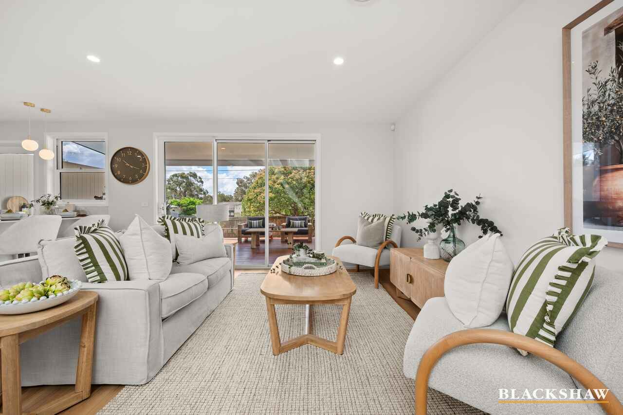 The gourmet kitchen is a true showpiece, showcasing abundant cabinetry and bench space, a built-in Franke oven, induction cooktop, and microwave, and a fully integrated dishwasher. A stylish breakfast buffet, elegant polished brass fixtures and a Kitchen servery window perfectly complement the home's contemporary design. Flowing seamlessly through large sliding doors, the kitchen connects to a spacious blackbutt timber rear deck featuring a built-in BBQ area and pergola, all overlooking a generous backyard, the ideal setting for family gatherings, entertaining friends, or simply relaxing outdoors in comfort and style. A matching blackbutt front deck enhances the home's warm welcome and architectural appeal, creating a cohesive connection between indoor elegance and outdoor living.