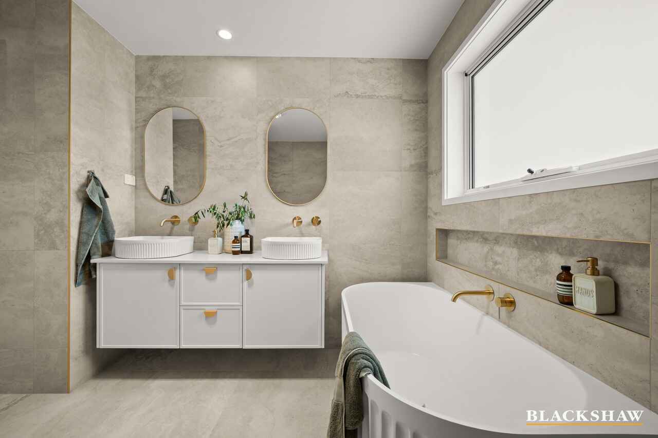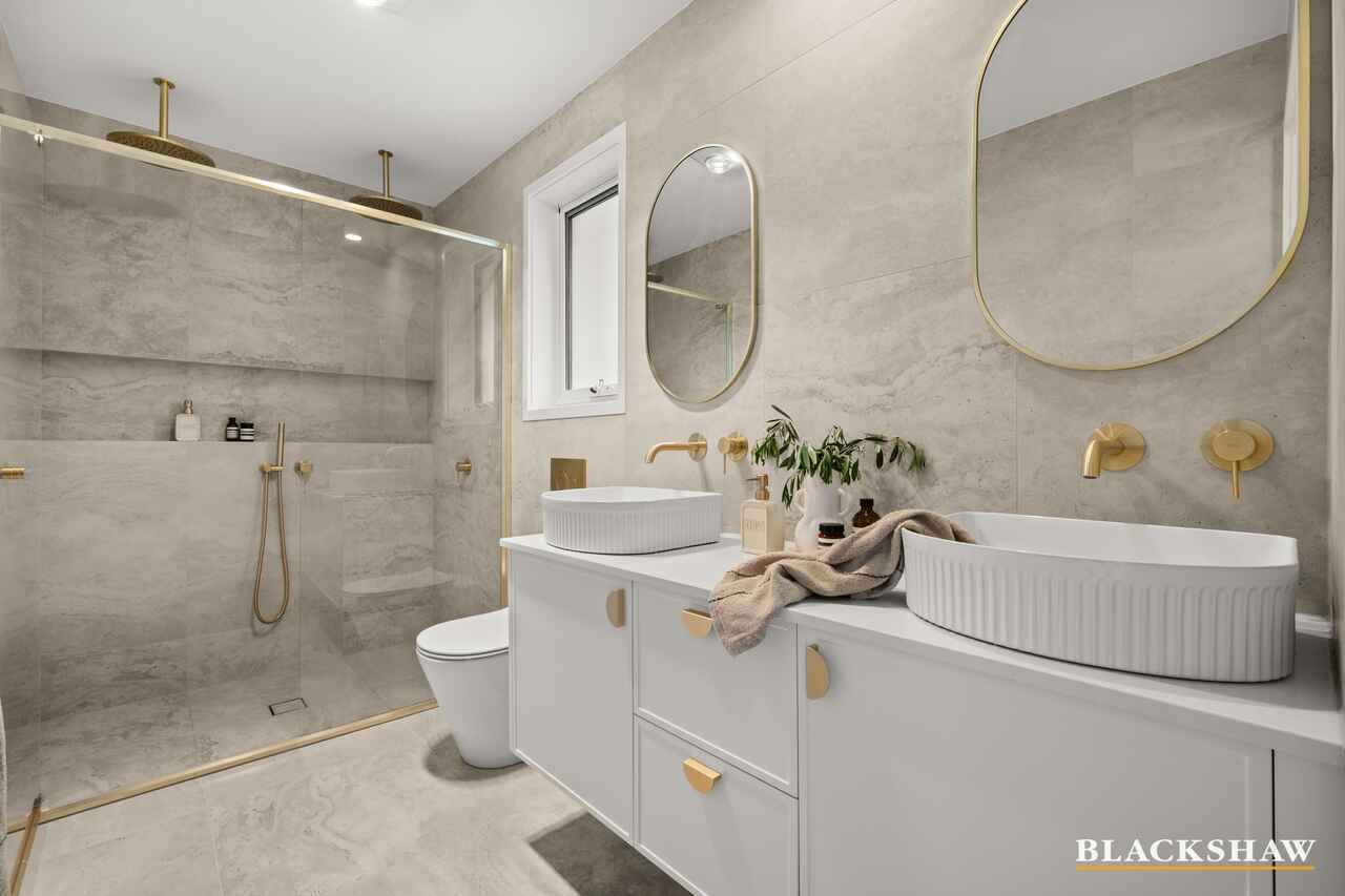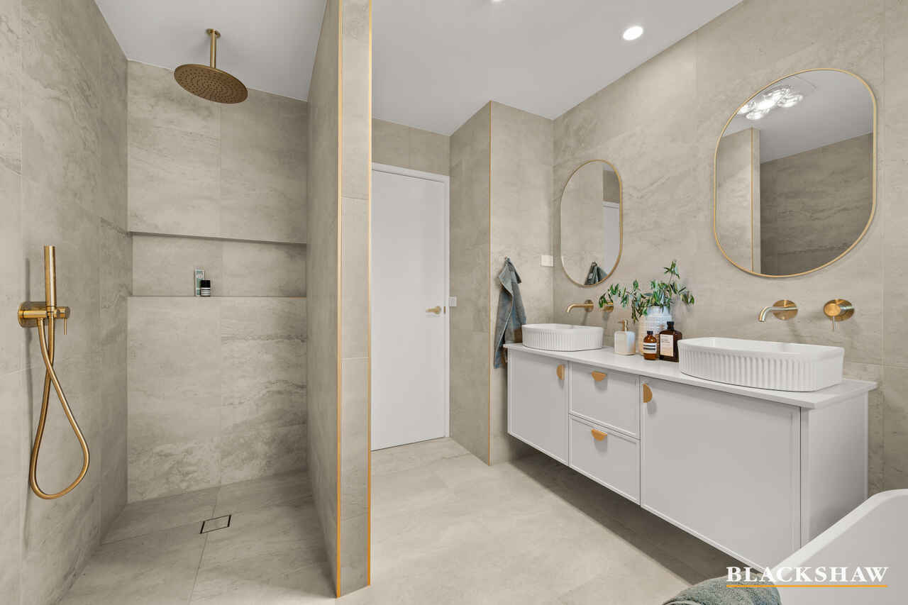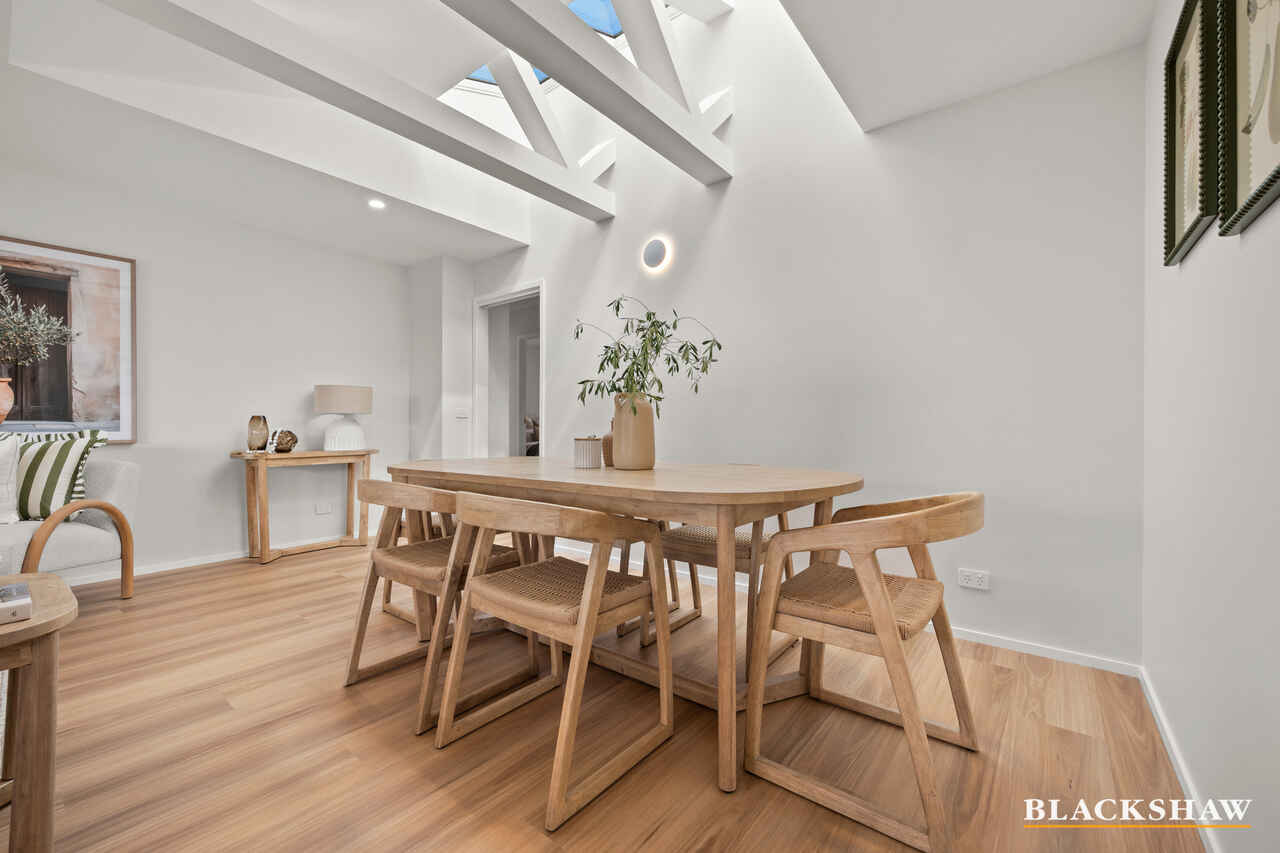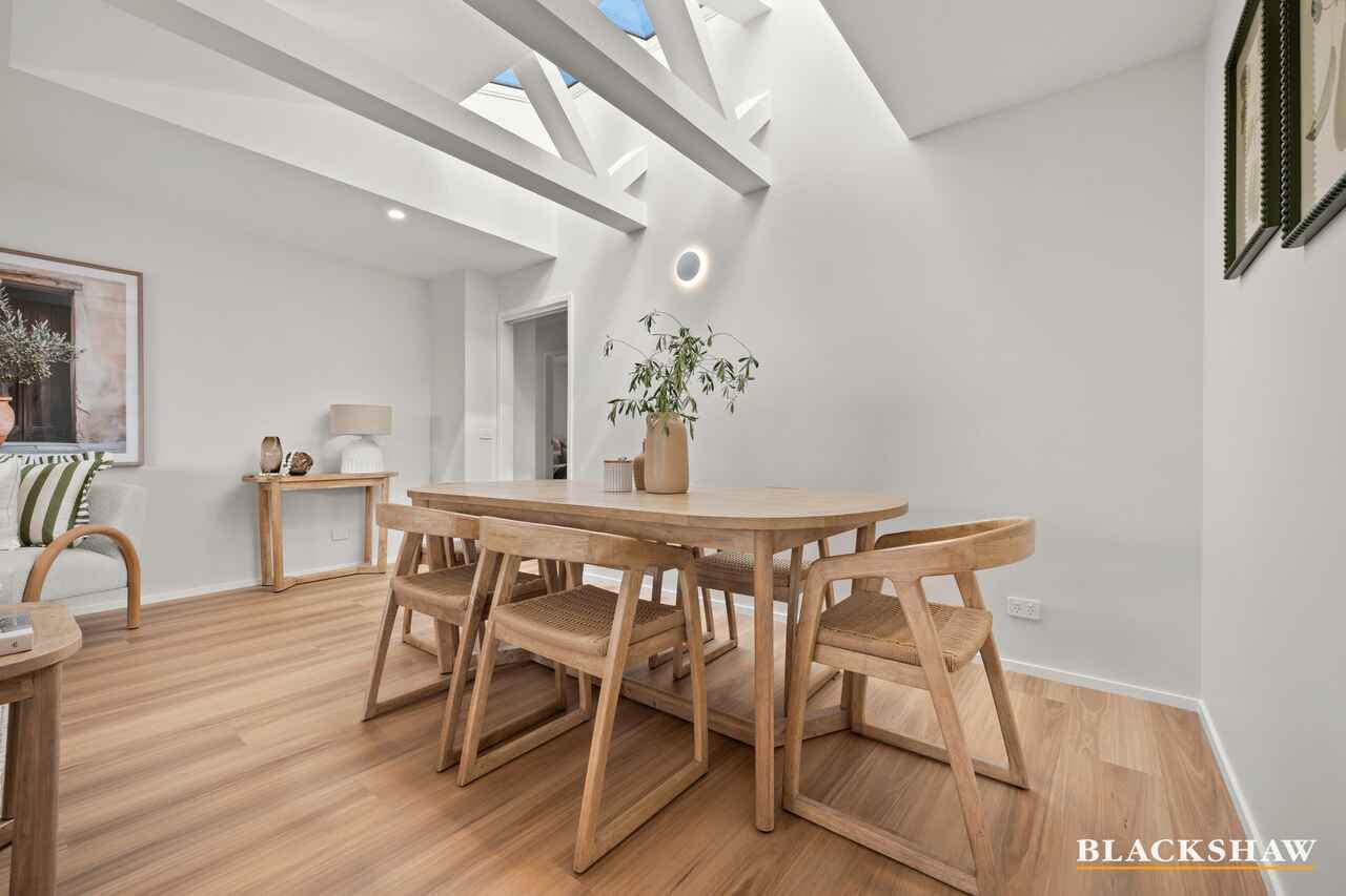 From the moment you arrive, you'll notice the seamless flow of natural light - north-facing windows flood the open-plan kitchen, dining, and living area, while a pitched roof with a signature skylight enhances the sense of space and airiness. The light beautifully highlights the custom polished brass joinery, blackbutt timber flooring and refined finishes throughout. Soft tones and modern textures create a calming atmosphere, making every room ideal for both relaxation and connection, while thoughtful design details strike a perfect balance of warmth, elegance, and functionality.