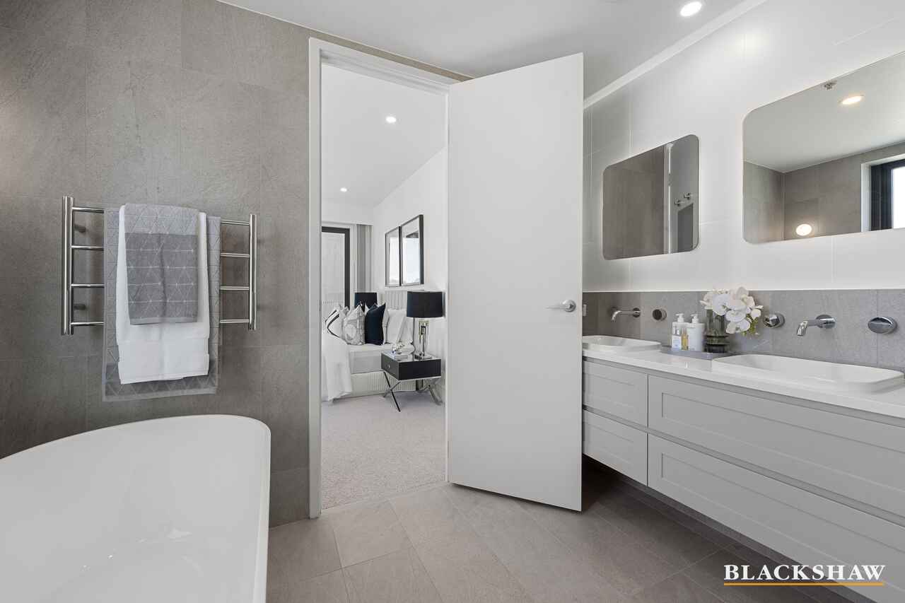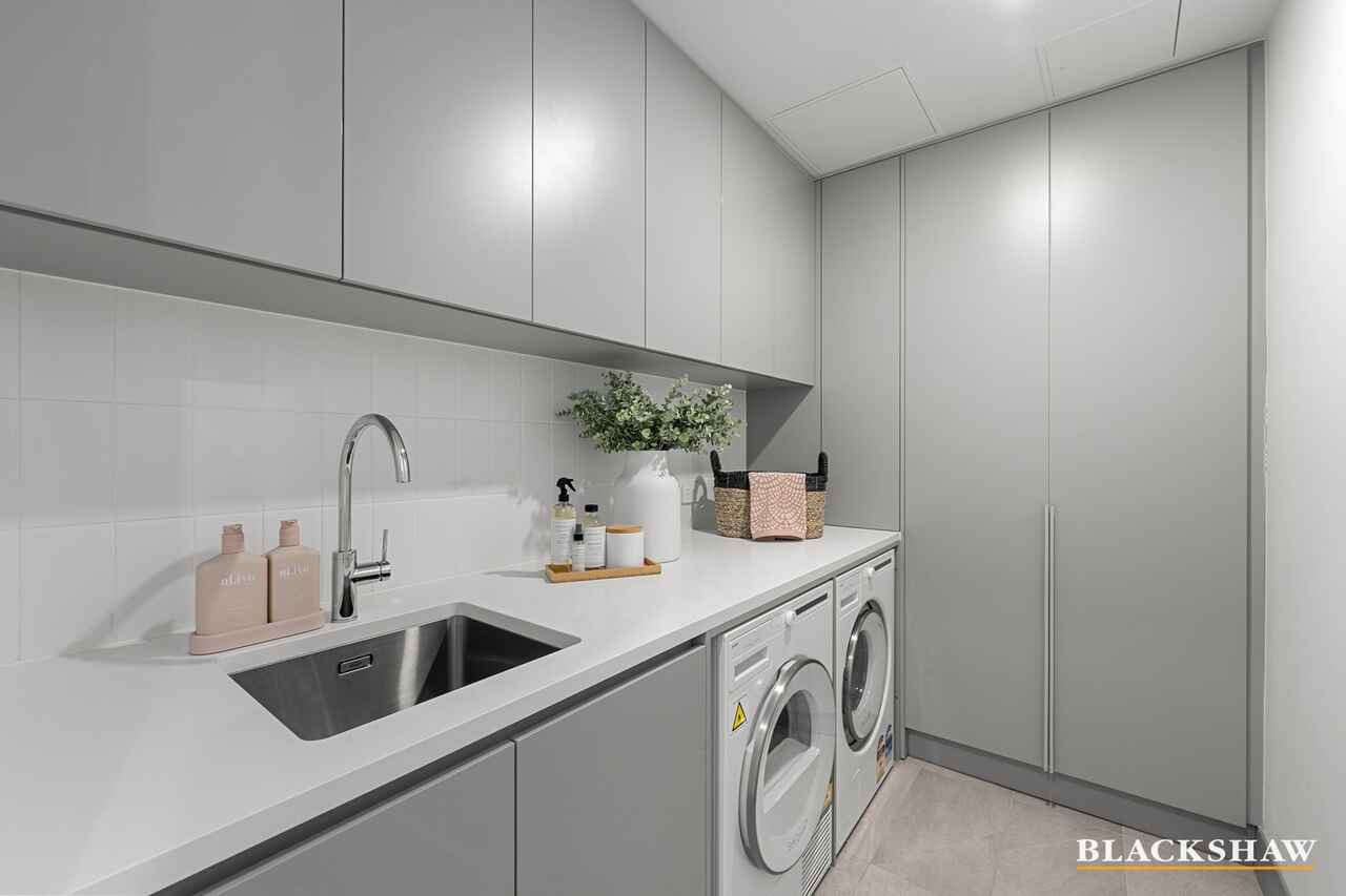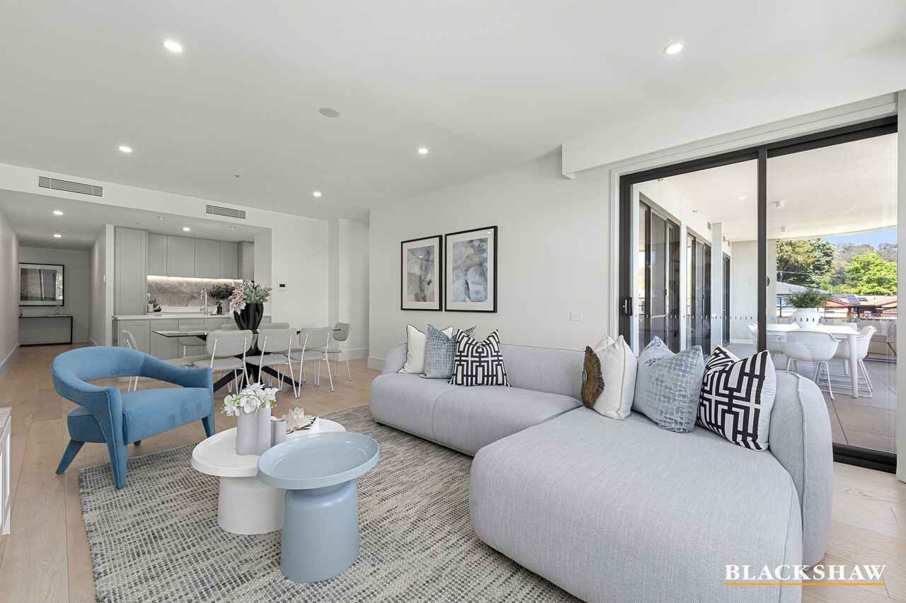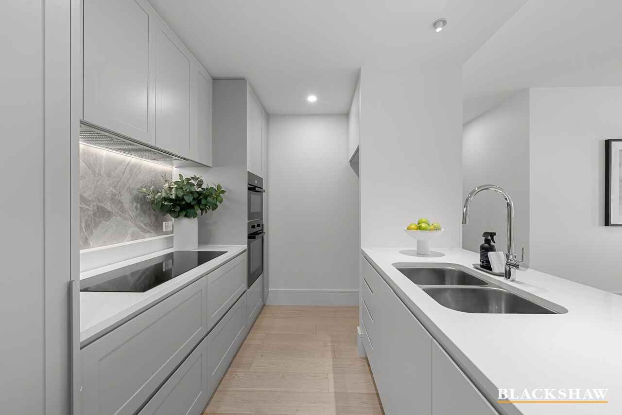 Upon entry, you are immediately welcomed by light-filled interiors that exude warmth and refinement. Custom-built storage cupboards are thoughtfully positioned near the entrance, offering both practicality and seamless integration with the home's design. The premium flooring and neutral palette create an inviting atmosphere, while the open-plan design provides a seamless connection between the kitchen, dining and living areas. This effortless flow continues outdoors to a spacious balcony, a serene setting for morning coffee, evening gatherings, or relaxing while enjoying picturesque views towards Parliament House and Black Mountain Tower.