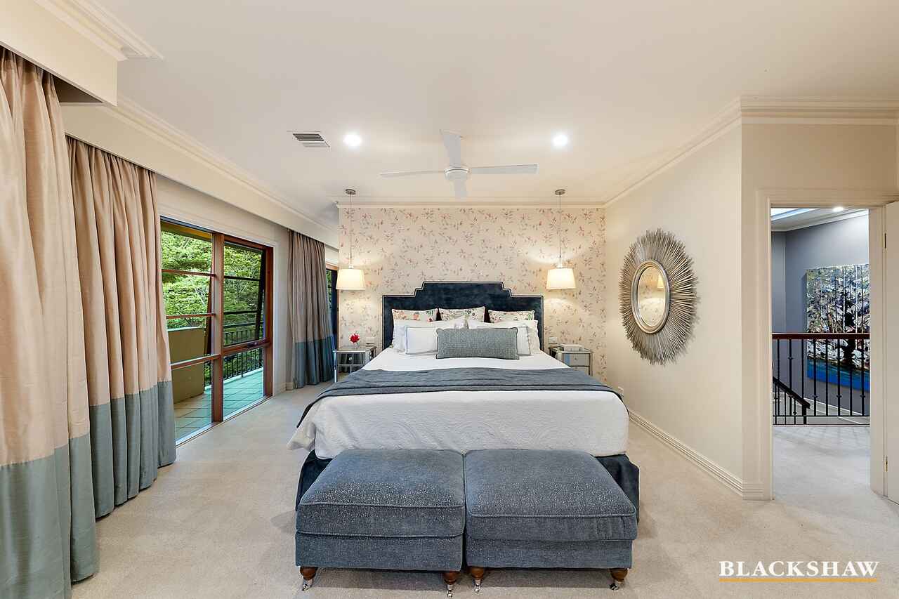 An instantly impressive gated entrance foyer sets the tone for this Terry Ring-designed home where views of Yarralumla Bay can be enjoyed through the leafy front treescape, and a spectacular parents' retreat upstairs capitalises on the lake views.
