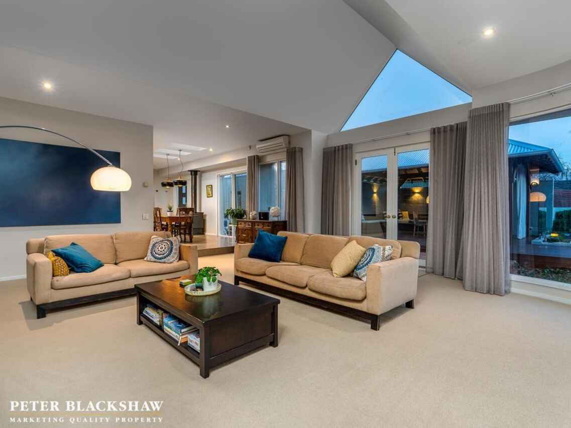 The home provides a resort style feel and is simply an entertainer's delight, with full length glass used extensively, French doors and large picture windows providing glorious sunny living spaces and outlook to the sparkling pool. The well planned and functional rear yard features a sensational cabana for that alfresco dining, multiple decks, and a swimming pool all in a well planted and low maintenance private setting, with local views towards Red Hill nature reserve.