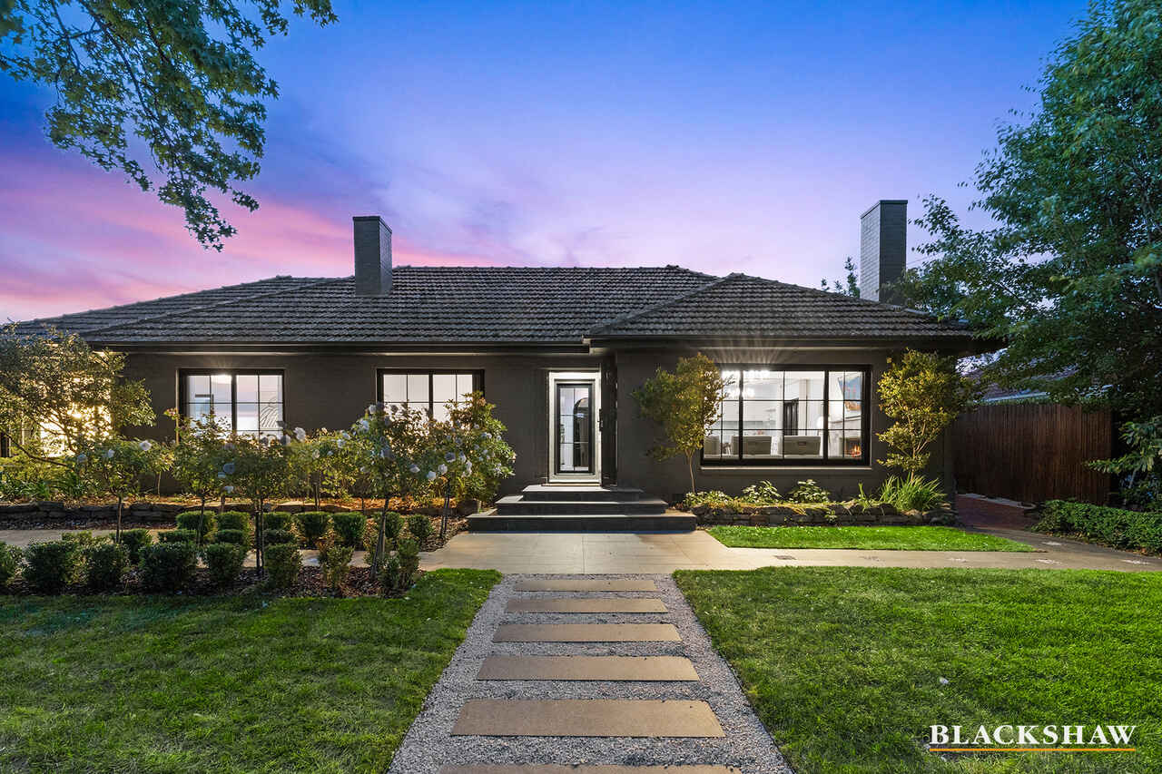 Set behind automated gates in prestigious Forrest, this exquisitely reimagined 1938 residence is luxuriously appointed with premium materials and refined finishes throughout. Picturesque front gardens blooming with roses frame the façade, with graceful steps leading up to the entry, setting a grand first impression. Substantial renovations have blended the home's original character with the highest level of modern craftsmanship. Originally built for Canberra's Chief Forester, Dr Maxwell Jacobs, the home continues to be part of the city's progressive fabric, with the shortest walk to Manuka for a morning coffee, and close to Collins Park, the National Triangle, and both Grammar schools.
