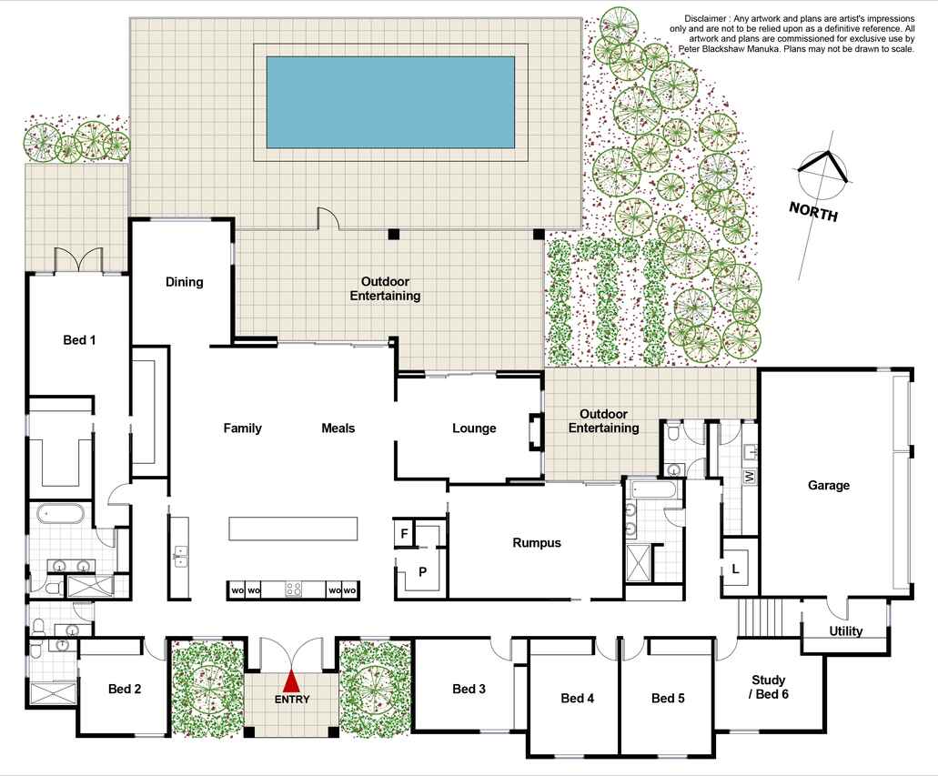 The current configuration provides 5 good sized bedrooms plus an additional large study. The generous master bedroom and guest bedroom is each complimented with an ensuite whilst a third luxurious bathroom services the 3rd, 4th and 5th bedroom. The master bedroom accommodates two walk-in-robes with all 4 remaining bedrooms accommodating a built-in-robe.