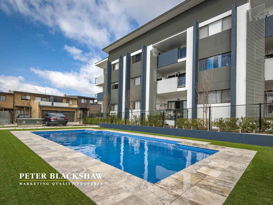Nestled in the heart of the exciting new suburb of Coombs on a sunny tree lined street sits this light filled two bedroom apartment. Only a few minutes' walk to the ever-growing Coombs Shopping Centre, this immaculate apartment will appeal as a lifestyle choice for owner occupiers or a solid addition to your investment portfolio. Situated on the second floor and featuring approximately 70m2 of living, this pleasant apartment offers a modern open plan living option, two large entertaining balconies, plus large New York style kitchen complete with Caesar stone bench top and quality Bosch and Smeg stainless steel appliances. Other features of this unit include ample internal storage, reverse cycle heating & cooling plus a secure car space and storage area downstairs. As one of Weston Creek's most exciting suburbs, Coombs also benefits from nearby recreational facilities, walking trails, parks and BBQ areas. The ideally located complex features an outdoor swimming pool, BBQ and Gym amongst it's well maintained gardens, is within a short walking distance to a number of local cafes, transport, schooling options and makes this an ideal choice for your next purchase. Don't miss out on this fabulous opportunity to secure your first home or investment property.