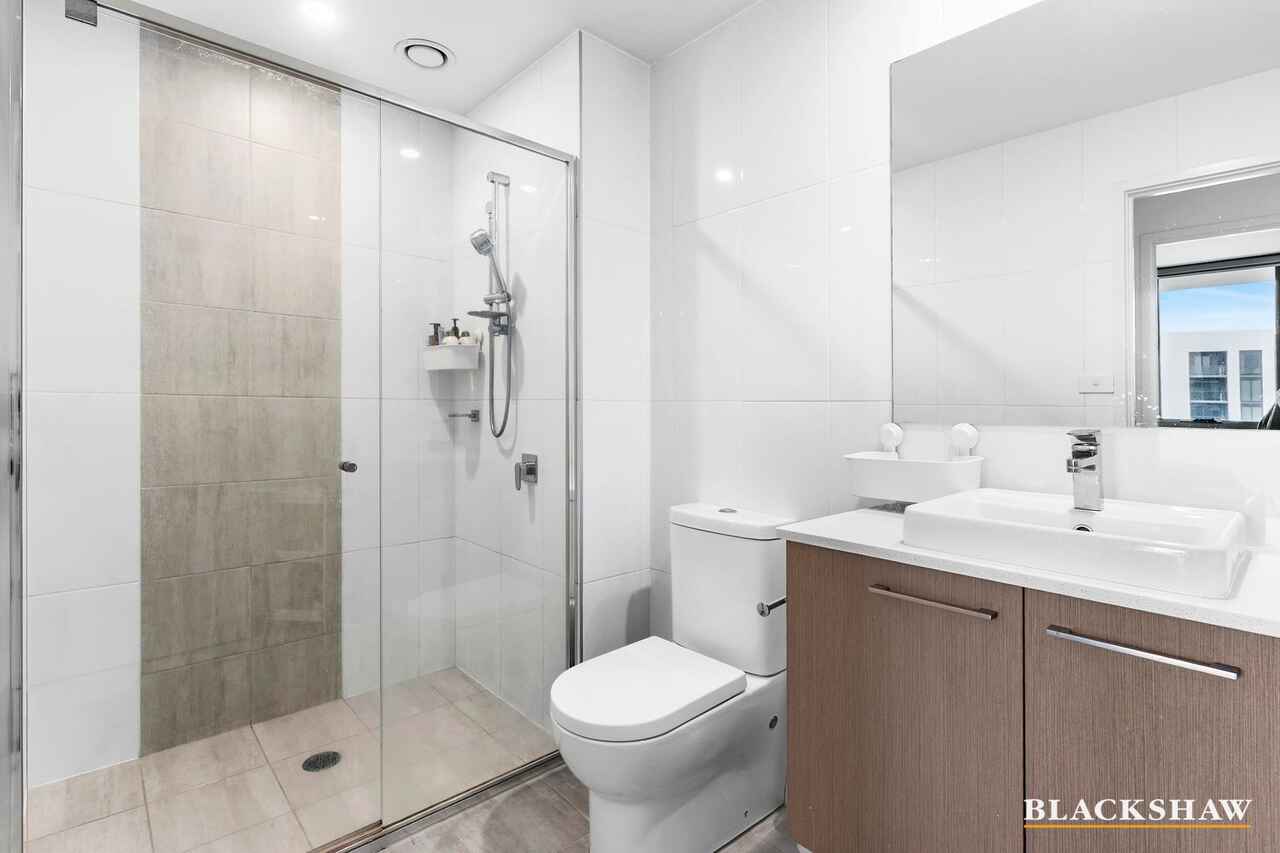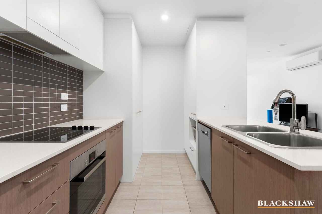 The open-plan living, dining and kitchen area flows seamlessly to a spacious 22m² balcony, perfect for entertaining or enjoying elevated views over Hughes and Garran.